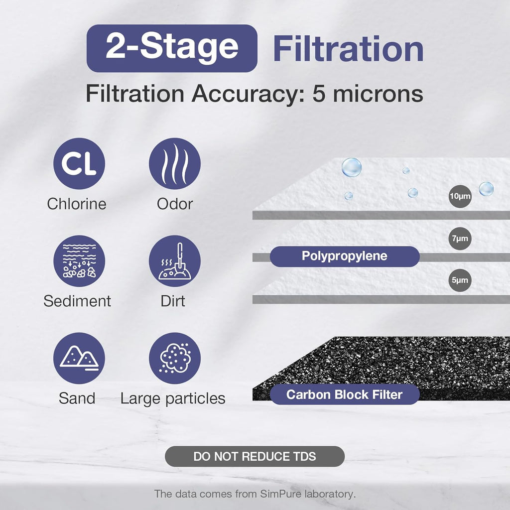 SimPure DB10C-2 Hauswasserfiltersystem, 2-Stufen-Filter mit Aktivkohle & Sedimentfilter, 10" x 4,5", 1" Anschlüsse
